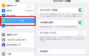 1.「モバイルデータ通信」を選択。