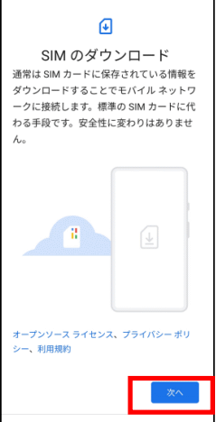4.承諾の画面で「次へ」をタップ