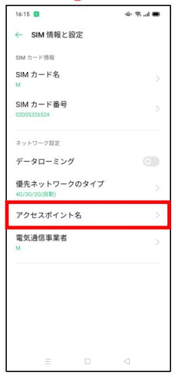 「アクセスポイント名」をクリック